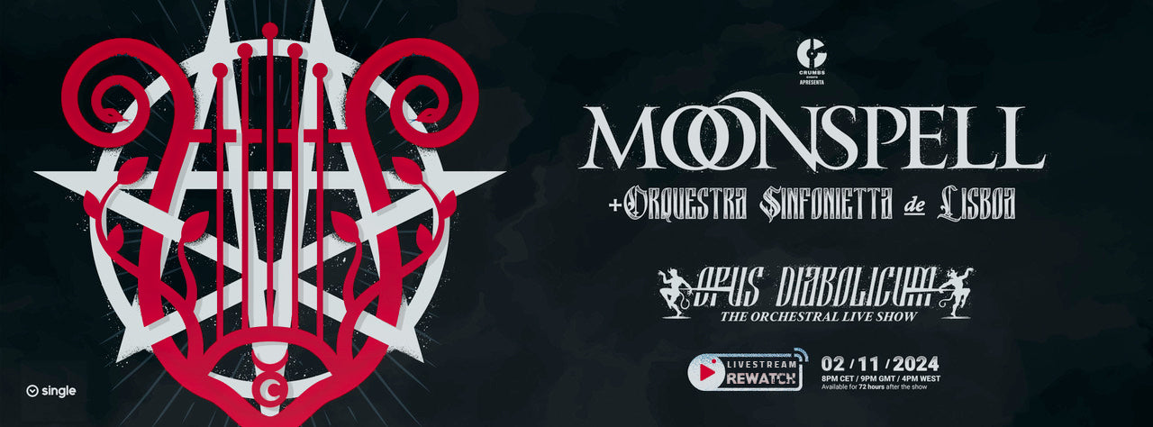 Due to the technical difficulties and problems on the livestream broadcast, we will re-stream the whole show on Saturday, November 2nd, free of any problems and in Full HD. It will also be up for the next 72 hours. Tickets purchased remain valid! Apologies on behalf of the band and enjoy this magnificent Moonspell + Orchestra show. THANKS FOR YOUR SUPPORT!